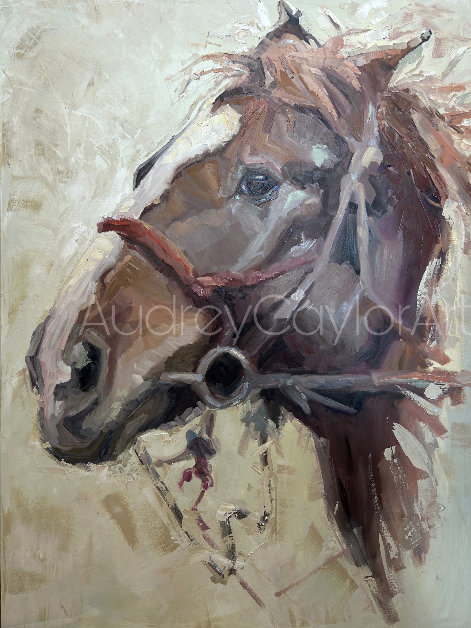 This western painting is currently at Audrey Caylor’s private studio in Lingleville Tx . For inquires please call 817-243-9051.