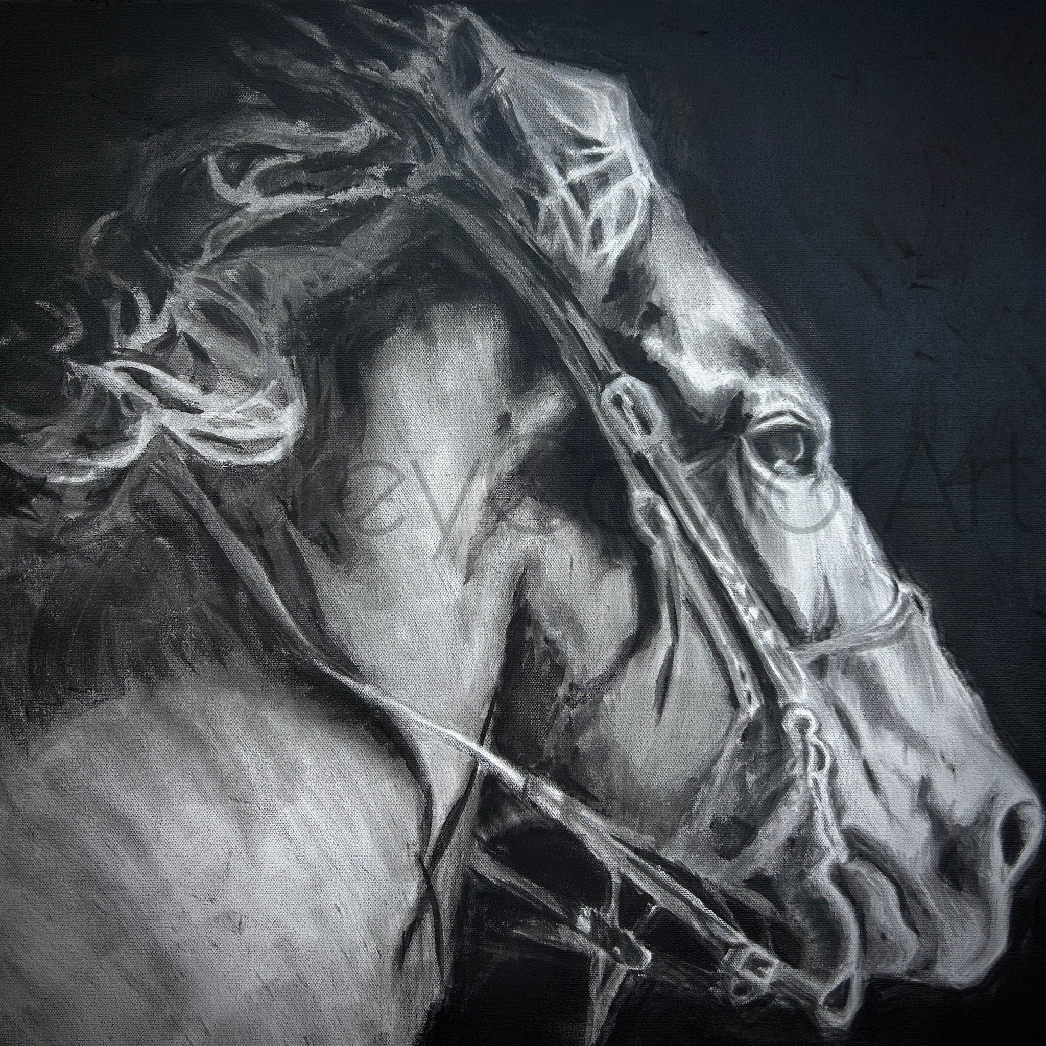 Into The Night Charocal Sketch Horse Art